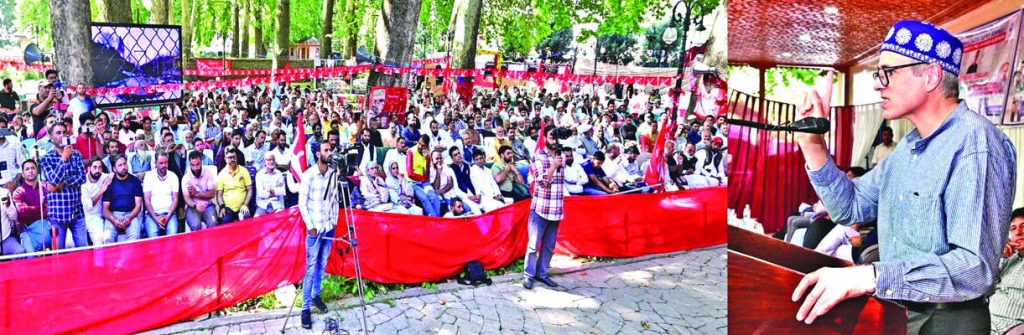 Touching upon the political aspirations of the people, Omar Abdullah reiterated his stand on restoration of statehood. “But my colleagues will also have to be courageous. They will have to face the powers that only want destruction in Jammu and Kashmir. We will fight. We will fight in democratic ways. We will fight in peaceful ways. We will get our rights within the realm of Constitution. But I am not ready to bring destruction and destruction in the homes of the people here. But I still believe that there is no despair in Allah’s court, we will get it. And we will get our rights. But for now, the work will continue,” he said amidst loud applause.