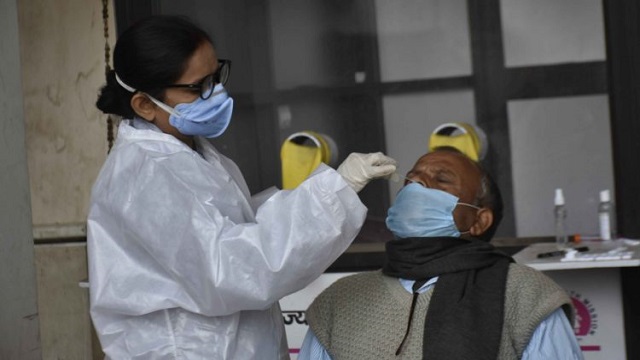 Patna: A health worker collects samples for COVID-19 testing, in Patna on Dec 15, 2020. (Photo: IANS)