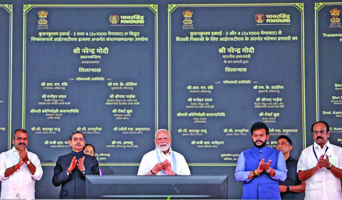 TAMIL NADU: Prime Minister, Narendra Modi, laid the foundation stone for the Transmission System being built by Power Grid Corporation of India Limited (POWERGRID), a ‘Maharatna’ CPSE under the Ministry of Power, Government of India for evacuation of power from Kudankulam Unit-3 & 4 (2×1000 MW) power plant in a function held at Tuticorin, Tamil Nadu on 27th July 2025.