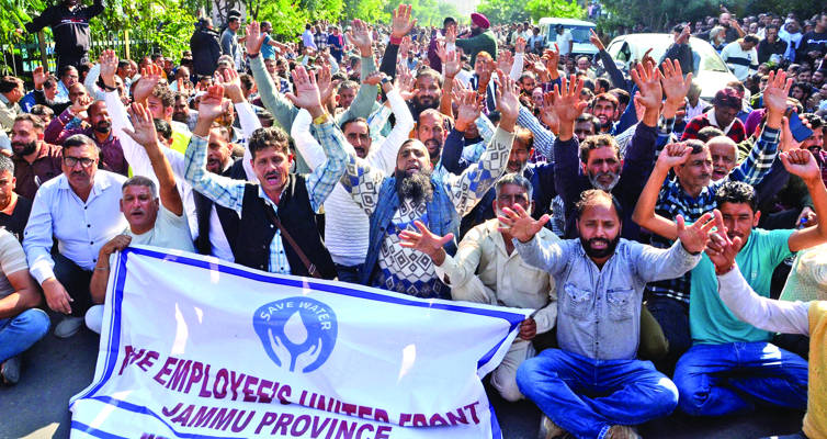 “We are demanding a clear policy on regularisation, implementation of the Minimum Wages Act, and release of pending wages. We have been protesting for years, yet our issues remain unresolved,” a leader of the PHE Employees United Front (Jammu Province) said.