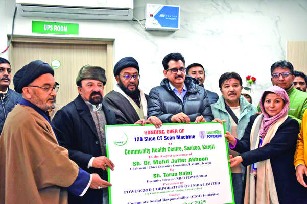 KARGIL: Power Grid Corporation of India Limited (POWERGRID), a Maharatna PSU under the Ministry of Power, Government of India, on Wednesday handed over a 128-slice CT Scan Machine to the Community Health Centre (CHC) Sankoo in Kargil district, Ladakh, under its Corporate Social Responsibility (CSR) initiative.