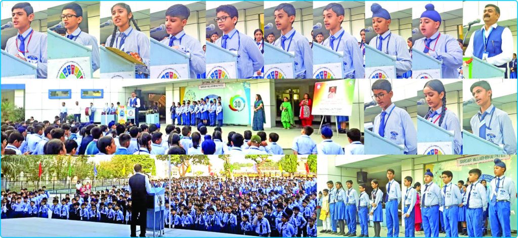 Garvit Sharma from Grade 5 took a resolution in front of the whole assembly. He said, “I take a vow to be the next Sardar Patel. I will put my nation above everything else. I will imbibe and reflect the strong principles of Sardar Patel through my deeds and stick to them amidst odds. I will be fearless after taking a stand in the interest of my nation, and come what may, I’ll continue till I succeed”.