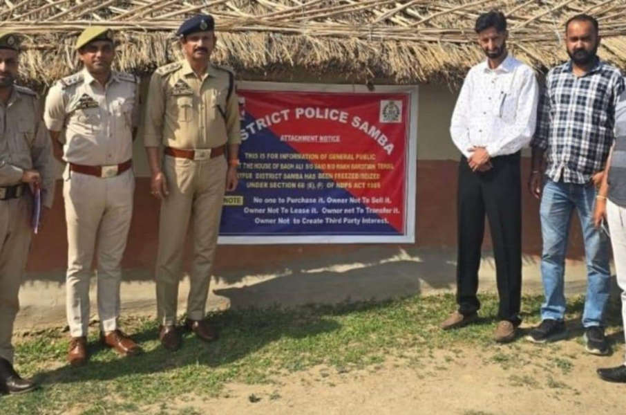 JAMMU: Jammu and Kashmir police on Wednesday attached two thatched houses, valuing about Rs six lakh, belonging to two notorious drug peddlers in Samba district, an official said.