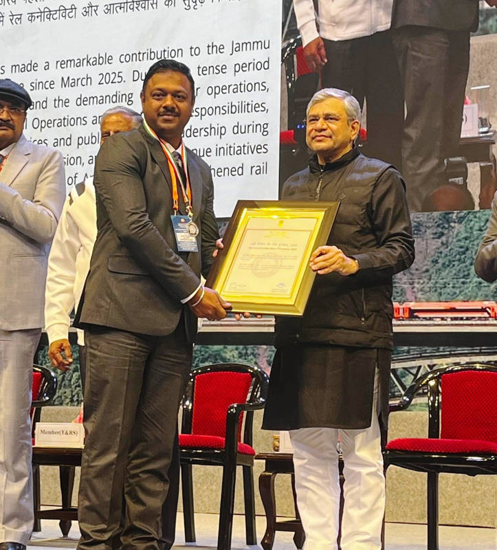 Union Minister for Railways Ashwini Vaishnaw conferred the award on Singhal at the Yashobhoomi Convention Centre in the national capital in recognition of his outstanding work and dedicated service during the year 2025, Public Relations Inspector, Jammu Division, Raghvender Singh said.