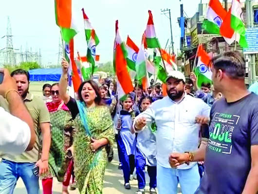 JAMMU: In a grand display of patriotism, Ritika Trehan, Chief Spokesperson of BJP Mahila Morcha, accompanied by BJP leader Tarun Sharma Yatra incharge led a Tiranga rally in Narwal, Jammu, to celebrate the success of Operation Sindoor.