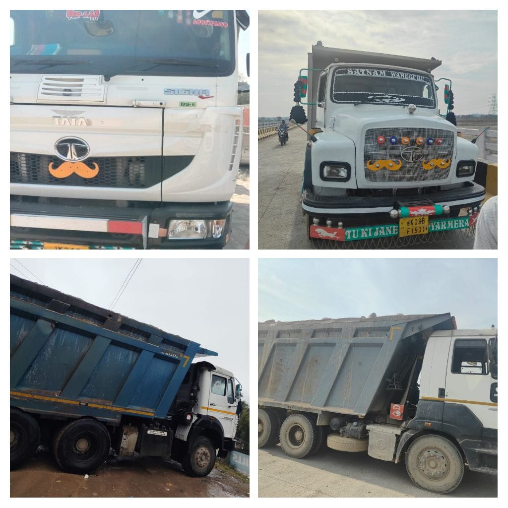 Police teams headed by Incharge Police Post Rakh Amb Talli & Incharge Police Post Mansar both falling under PS Samba while performing patrolling duty in their jurisdictional areas, have seized four dumpers bearing registration Nos. JK02BF-1931, JK21G-9265, JK02CX-7769 & JK21G-7847 which were being used for illegal transportation/mining of the construction material in the area.
