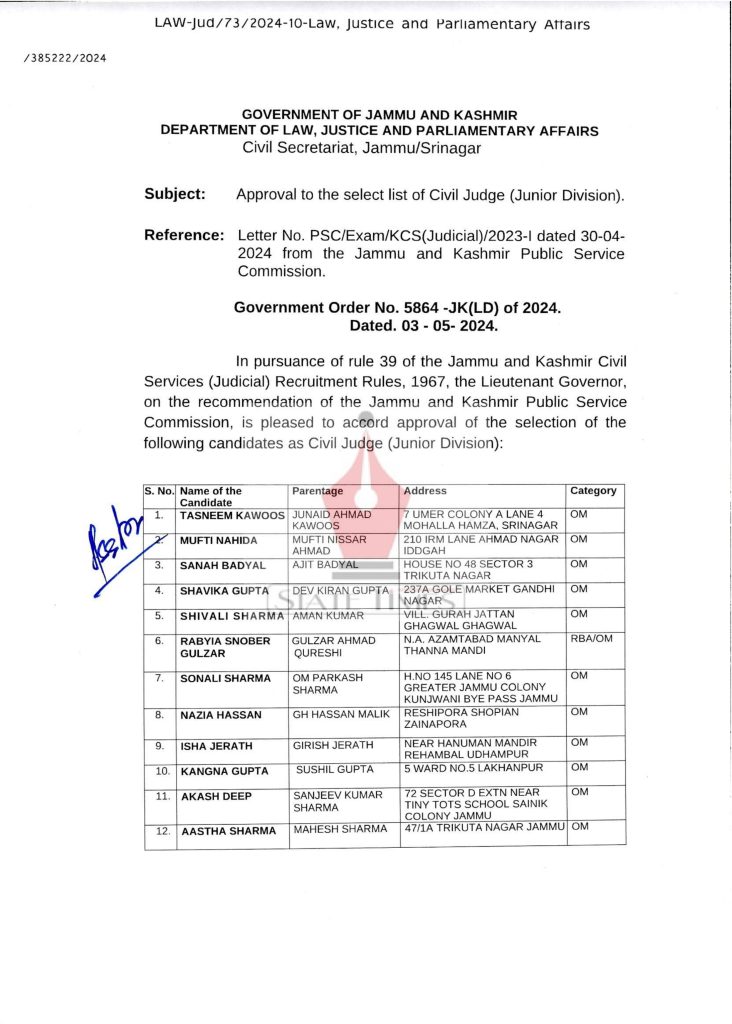 Selection list of Civil Judge Image GalleryJammuJammu and Kashmir By statetimes_editor Last updated May 3, 2024 0 5,803 Share 0 5,803 Share FacebookTwitterGoogle+ReddItWhatsAppPinterestEmail