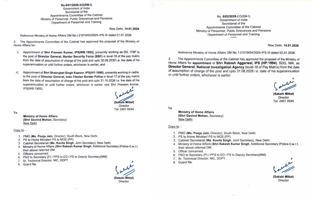 He has been appointed DG, ITBP for a period up to October 31, 2026, the date of his superannuation, according to a Personnel Ministry order.