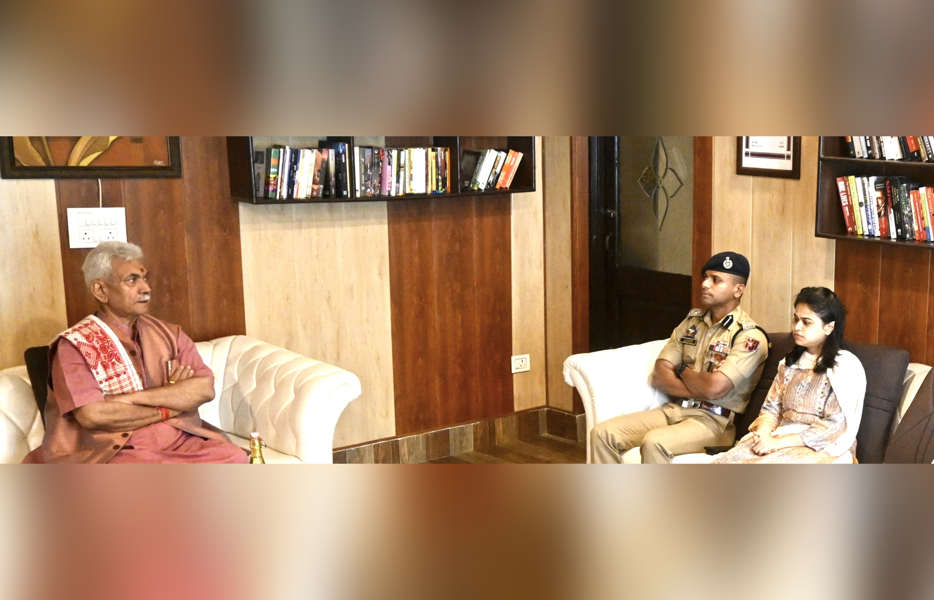 JAMMU: Jammu and Kashmir Lieutenant Governor Manoj Sinha on Tuesday called on Udhampur Senior Superintendent of Police Amod Ashok Nagpure at his house to offer his condolences over the death of the officer’s daughter.