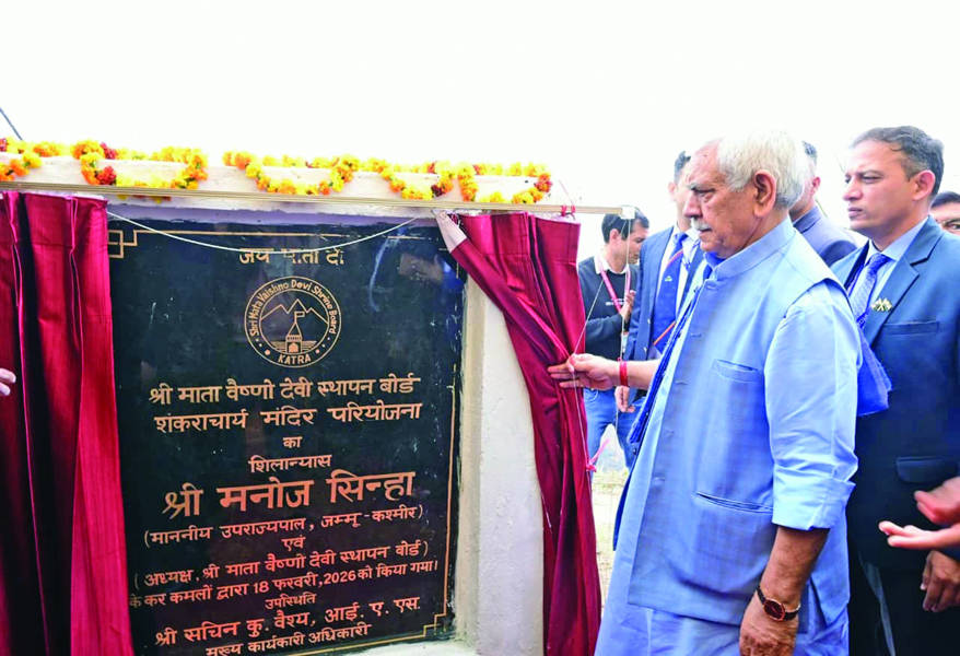 KATRA: Marking a historic milestone, Lieutenant Governor Manoj Sinha laid the foundation stone on Wednesday for the much-anticipated Sri Shankaracharya Temple. Perched on hillocks beside the revered Shri Mata Vaishno Devi Shrine, this project takes root after decades, realizing a vision first envisioned in the 1960s.