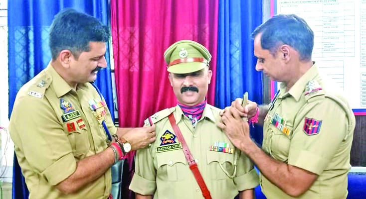 JAMMU: In a moment of pride and celebration, Pipping ceremonies were held on Monday at Police Station Gangyal and PS Bagh-e-Bahu, where SP South, adorned HC Manoj Sharma of PS Gangyal and HC Goutam Singh Chib of PS Bagh-e-Bahu with ASI ranks on their promotion.