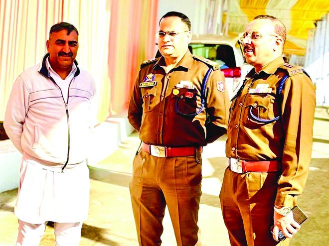 JAMMU: Senior Superintendent of Police (SSP) Jammu, Joginder Singh, accompanied by SP Rural Jammu Brijesh Sharma, SDP Akhnoor, DySP Traffic Rural, and SHO Gharota, today visited Baba Ballo Ji Temple, Mathwar, to review the security and traffic arrangements put in place for the forthcoming Basant Panchami festival.