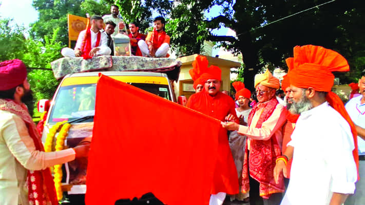 JAMMU: Editor-in-Chief, STATE TIMES, Raj Daluja on Sunday flagged of the 43rd Holy Chhari Yatra of the Shiv Sena (UBT) Jammu and Kashmir unit from the historic Shri Raghunathji Temple in Jammu.