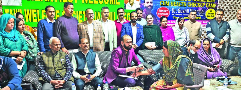 JAMMU: In view of increasing cardiac morbidity and mortality in women on unprecedented scale and minimalistic access to cardiac care setups in most of regions Head Department of Cardiology GMCH Jammu Dr Sushil Sharma in collaboration with Tawi Welfare Society held a day long cardiac awareness cum health check up camp at Sure Chak area of Jammu in which particular focus on cardiac issues of women particularly younger age group and educated them about the healthy heart lifestyle for better future of coming generations and reduce both social and economic burden.