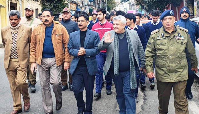Transport Commissioner J&K Vishesh Paul Mahajan leading road safety rally.