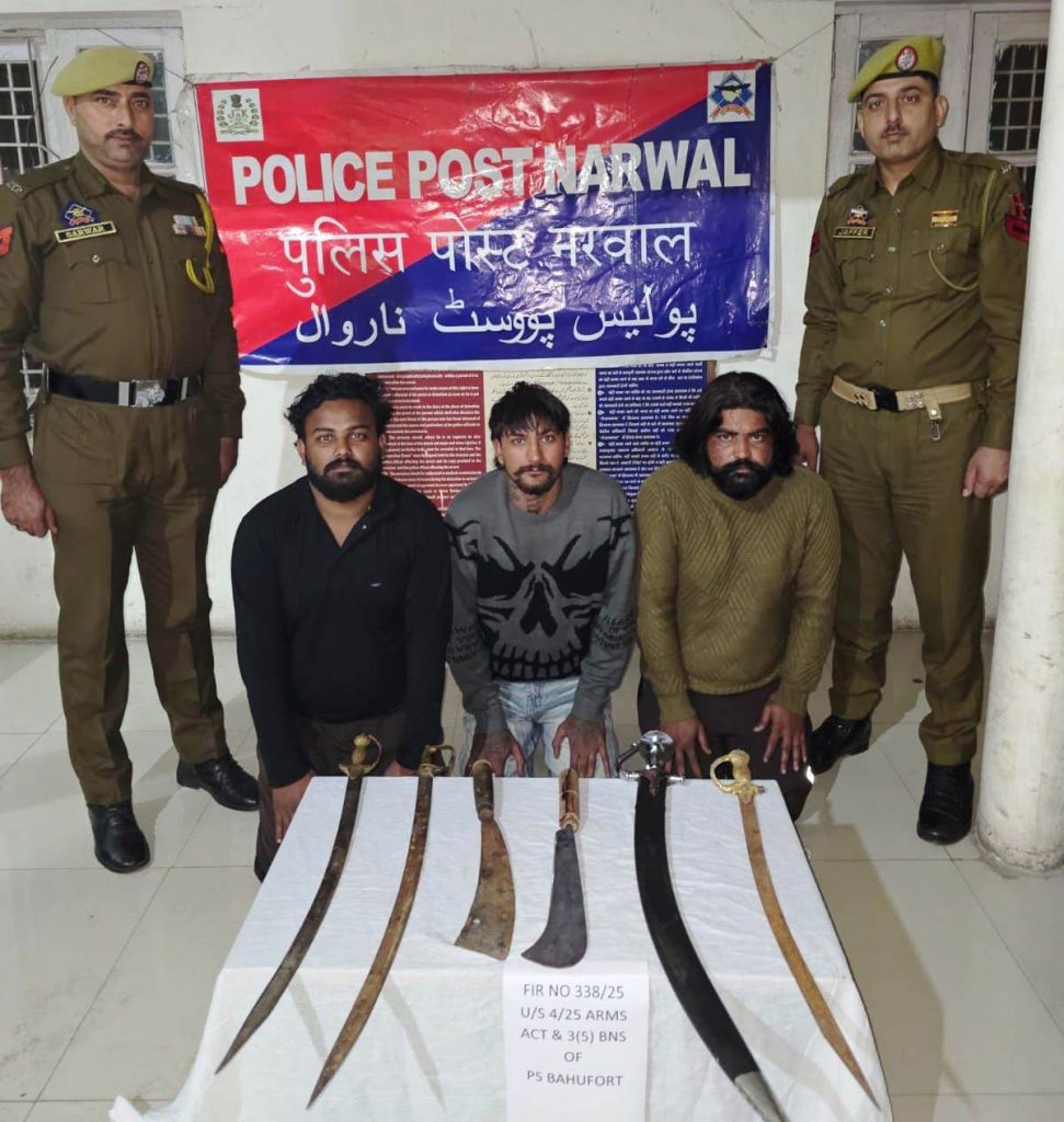 Three men arrested in Jammu for possessing sharp-edged weapons