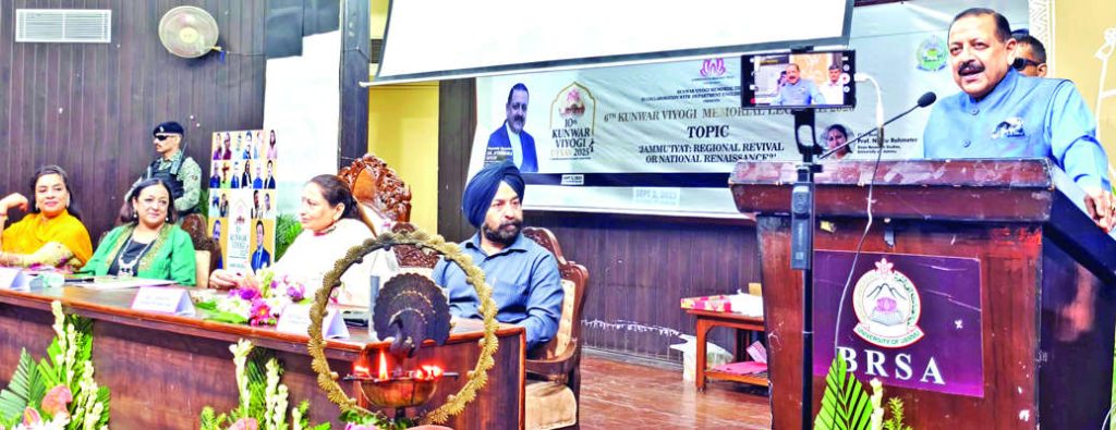 JAMMU: Delivering the 6th “Kunwar Viyogi Memorial Lecture” at University of Jammu on Tuesday, Union Minister Dr Jitendra Singh said, it is time to align Dogra legacy with India’s mainstream global journey.
