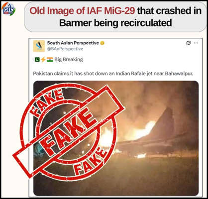 Additionally, another old image — this time of a MiG-29 crash in Barmer, Rajasthan, from September 2024 — was recirculated by pro-Pakistan social media handles to imply recent Indian Air Force losses, which did not occur.