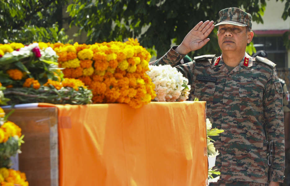 Major General Singh, along with other Army ranks, police, BSF, and civilian officials laid wreaths on the tricolour-wrapped coffin of the deceased, officials said.