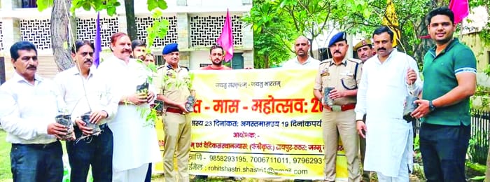 JAMMU: In observance of Sanskrit Month, the Shri Kailakh Jyotish avim Vedic Sansthan Trust organized a tree plantation campaign at the Jammu Police Line IRP 18th Battalion. The event underscored the importance of trees as part of cultural heritage and environmental stewardship. SSP Ramesh Angral, Commandant of IRP 18th Battalion, highlighted the significance of planting trees in memory of martyrs and urged attendees to pledge planting a tree on each child’s birthday. He emphasized that trees are integral to our culture and identity, referencing their importance in scriptures. Mahant Rohit Shastri, a key figure in promoting Sanskrit and Indian culture, addressed the dangers of environmental pollution and the urgent need for tree planting.