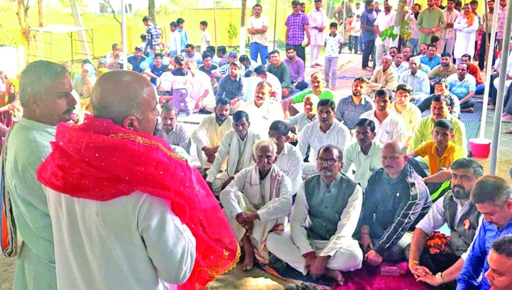 MLA Yudhvir Sethi addressing at annual congregation of the Jagtyal Baladri at Jagti.